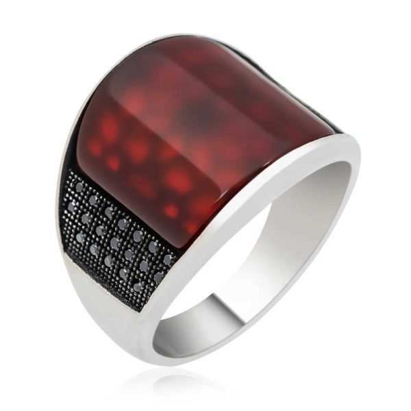 Doğada yer alan taşlar, oldukça çeşitli türlerde bulunmaktadır. Aynı zamanda bu tür taşlardan bazıları da, şifalı taş olarak anılmaktadır. Şifalı olduğuna inanılmakta olan bu taşlardan birisi de akik taşıdır. Vücuda temas ettiğinde vücuda sıcaklık vermektedir. Bu özelliği sayesinde de, vücutta meydana gelmiş ağrıların ve de gerginliğin azalmasını sağlar. Cilt hastalıkları konusunda, akik taşı çok büyük bir önem taşımaktadır. Gümüş üzerindeki akik taşından oluşan yüzük günün her anında kullanabileceğiniz sağlığa faydaları sayılmakla bitmeyen bir aksesuardır. 925 ayar gümüşten imal edilmiştir. Gümüş üzerine oksit kaplama yapılmıştır. Oksit kaplama yapılan ürünler parlaklığını uzun süre muhafaza eder. Üzerinde bulunan taşlar akik ve zirkon’dur. Tüm yüzük modellerinde olduğu gibi gümüş akik taşlı erkek yüzük modeli de tamamen el emeği ile üretilmiştir. Gümüş ve değerli taşlar nedeniyle belirtilen ortalama ürün ağırlığında ± %10 sapma olabilmektedir.