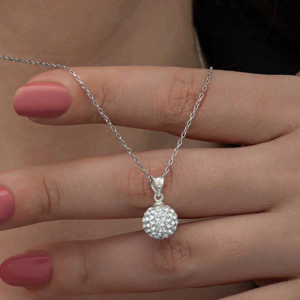 Gümüş Beyaz Kristal Taşlı Kadın Kolye