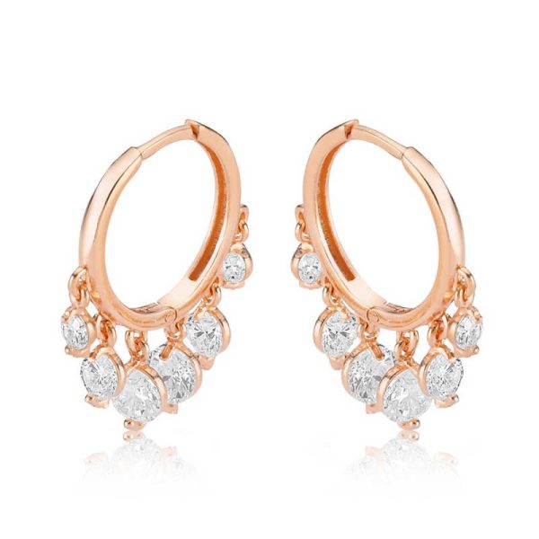 Gümüş Beyaz Taşlı Rose Halka Küpe