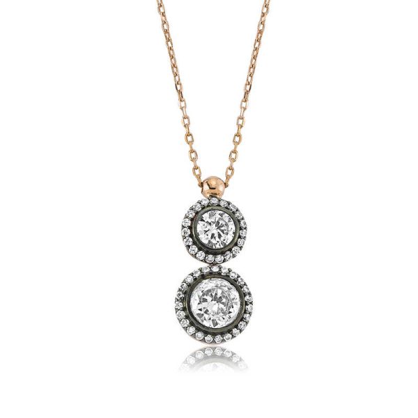 İki tane taşın birleşimiyle oluşan bu gümüş elmas model bayan kolye ile tarzınızı ortaya koyun. Sade ve şık tasarımıyla özel günlerinizde tercih edebileceğiniz bir modeldir. Elmas model bayan kolye 925 ayar gümüşten imal edilmiştir. Gümüş üzerine rose altın kaplama yapılmıştır. Rose altın kaplama yapılan gümüş bayan kolye modelleri parlaklığını uzun süre muhafaza eder ve oksitlenmesi gecikir. Kolye üzerinde bulunan taşlar zirkondur. Gümüş zincirin boyu ortalama 45 cm’dir. Tüm gümüş bayan kolye modellerinde olduğu gibi elmas model bayan kolye modeli de el emeği ile üretilmiştir. Gümüş ve değerli taşlar nedeniyle belirtilen ortalama ürün ağırlığında ± %10 sapma olabilmektedir.