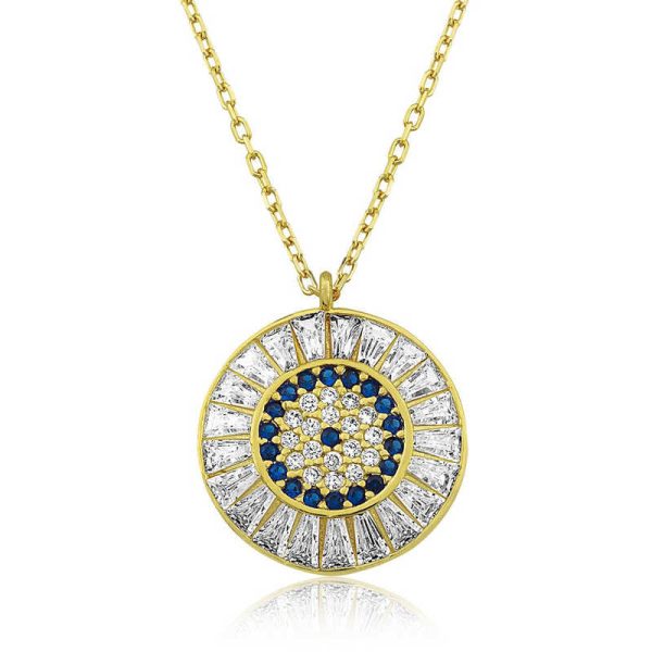 Gümüş Gold Baget Taşlı Nazar Kadın Kolye