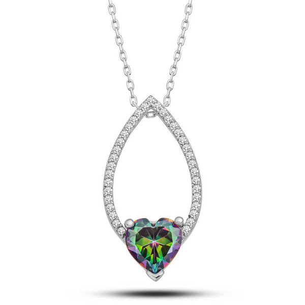 Gümüş Kalp Mistik Topal Taşlı Damla Kadın Kolye