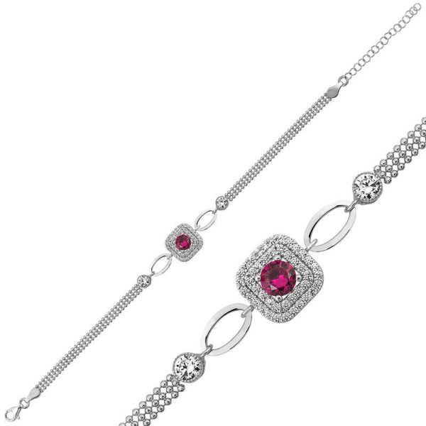 Gümüş Kare Montür Pembe Taşlı Bileklik