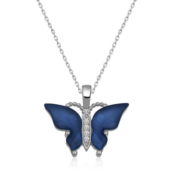 Gümüş Mavi Kaplangözü Taşlı Kelebek Bayan Kolye