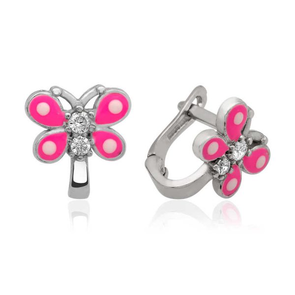 Gümüş Pembe Kelebek Çocuk Küpesi