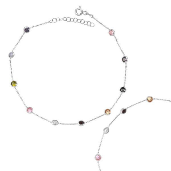 Kalbimizin ve ruhumuzun en eğlenceli tarafı olan rengarenk hayal dünyamızın yansıması özel tasarım renkli halhallar… Bu şık halhalı doğum günü hediyesi, sevgililer günü hediyesi veya annelere hediye olarak özel günlerde tercih edilebilecek mükemmel bir seçenektir. Renkli halhal modeli 925 ayar gümüşten üretilmiştir. Halhal üzerindeki taşlar farklı renklerde olabilmektedir. Tüm gümüş halhal modellerinde olduğu gibi gümüş renkli taşlı halhal modeli de el emeği ile üretilmiştir. Gümüş ve değerli taşlar nedeniyle belirtilen ortalama ürün ağırlığında ± %10 sapma olabilmektedir.
