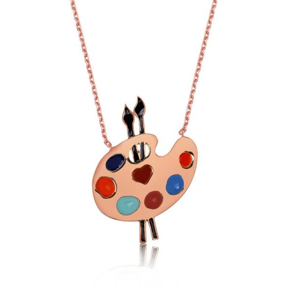 Hayatın bütün renklerini barındırıp, bütün hayal gücünüzü kullanabileceğiniz bu ressam paletiyle kendi renklerinizi yansıtmaya ne dersiniz? Bu şık ve farklı tasarım; doğum günü hediyesi, sevgililer günü hediyesi veya annelere hediye olarak özel günlerde tercih edilebilecek mükemmel bir seçenektir. Bu anlamlı ve şık kolye; 925 ayar gümüşten imal edilmiştir. Bu bayan gümüş kolye üzerine rose kaplama yapılmıştır. Rose kaplama yapılan tüm kolye modelleri parlaklığını uzun süre muhafaza eder, gümüşü pembe renge dönüştürür ve oksitlenmeyi geciktirir. Zincir boyu ortalama 45 cm’dir. Tüm bayan gümüş kolye modellerinde olduğu gibi bu gümüş ressam paleti bayan kolye de el emeği ile üretilmiştir. Gümüş ve değerli taşlar nedeniyle ürün ağırlığında ± %10 sapma olabilmektedir.