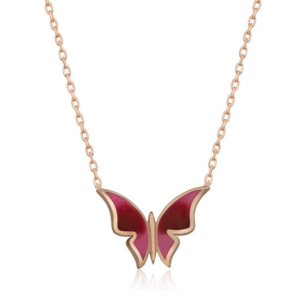Özgürlüğü masumiyeti ve saflığı simgeleyen kelebekler, tertemiz sevginin ve aşkın ifadesidir. Bahar kelebekleri kolye anlam itibari ile aşkın küçük bir kıvılcım ile başladığı daha sonra büyük bir sabır ile büyüdüğü ve en sonunda ilan-ı aşkı ifade eder. Sizin olduğu kadar sevdiklerinizin de keyifle takacağı minimal kelebek bayan kolye en güzel hediyelerden biri olacaktır. Kolye 925 ayar gümüşten imal edilmiştir. Gümüş üzerine rose kaplama yapılmıştır. Rose kaplama yapılan gümüş bayan kolyeler parlaklığını uzun süre muhafaza eder, ve oksitlenmeyi geciktirir. Kolye üzerinde bulunan renkler mine işlemesidir. Gümüş olan zincir boyu ortalama 45 cm’dir. Tüm gümüş bayan kolyelerde olduğu gibi gümüş minimal kelebek bayan kolye de el emeği ile üretilmiştir. Gümüş ve değerli taşlar nedeniyle belirtilen ürün ağırlığında ± %10 sapma olabilmektedir.