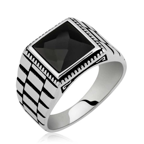 En kaliteli ve şık erkek takılarını, yeni modelleri ile erkeklerin beğenisine sunuyoruz. Bir kadını etkilemenin yolu neden hoş bir yüzük olmasın? Gümüş saat kordonu desenli erkek yüzük modeli özel olarak el işçiliği ile yapılmıştır. Bu şık gümüş erkek yüzüğü siz de parmağınızda taşımaktan ve dostlarınıza hediye etmekten mutluluk duyabilirsiniz. Bu şık yüzük modeli 925 ayar gümüşten imal edilmiştir. Gümüş üzerine oksit kaplama yapılmıştır. Oksit kaplama yapılan gümüş erkek yüzük modelleri otantik bir görünüme sahip olur. Gümüş erkek yüzük modellerinin tamamında olduğu gibi saat kordonu desenli kesme taşlı erkek yüzük modeli de tamamen el emeği ile üretilmiştir. Gümüş ve değerli taşlar nedeniyle belirtilen ortalama ürün ağırlığında ± %10 sapma olabilmektedir.