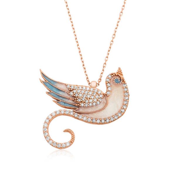 Gümüş Zümrüdü Anka Kuşu Bayan Kolye